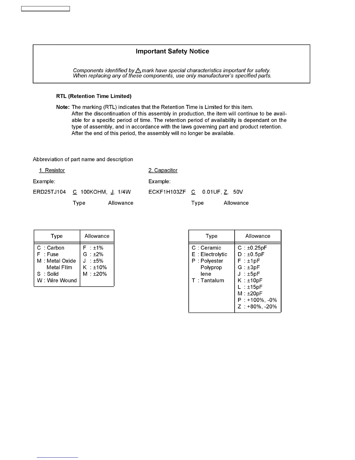 Panasonic TH-58PH10BK - Replacement Parts List Notes