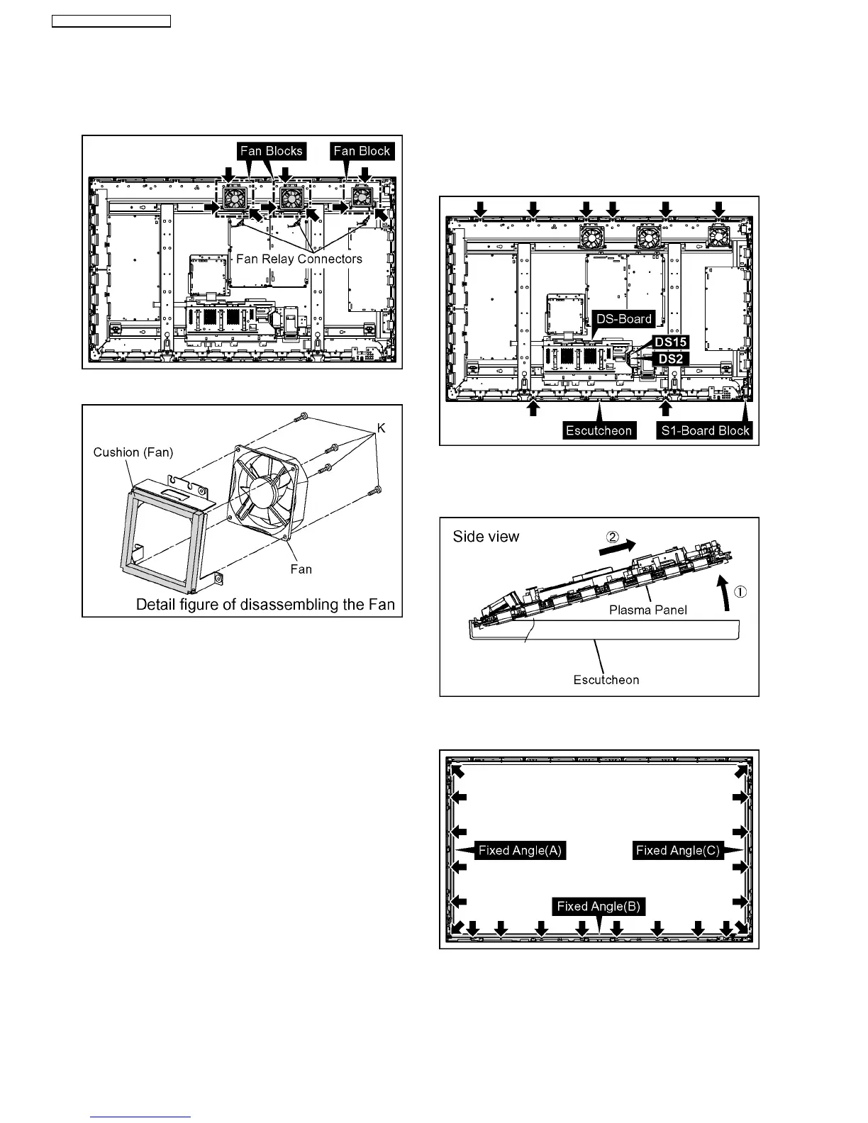 3. Remove each 4 screws (K) and then remove the Fans.