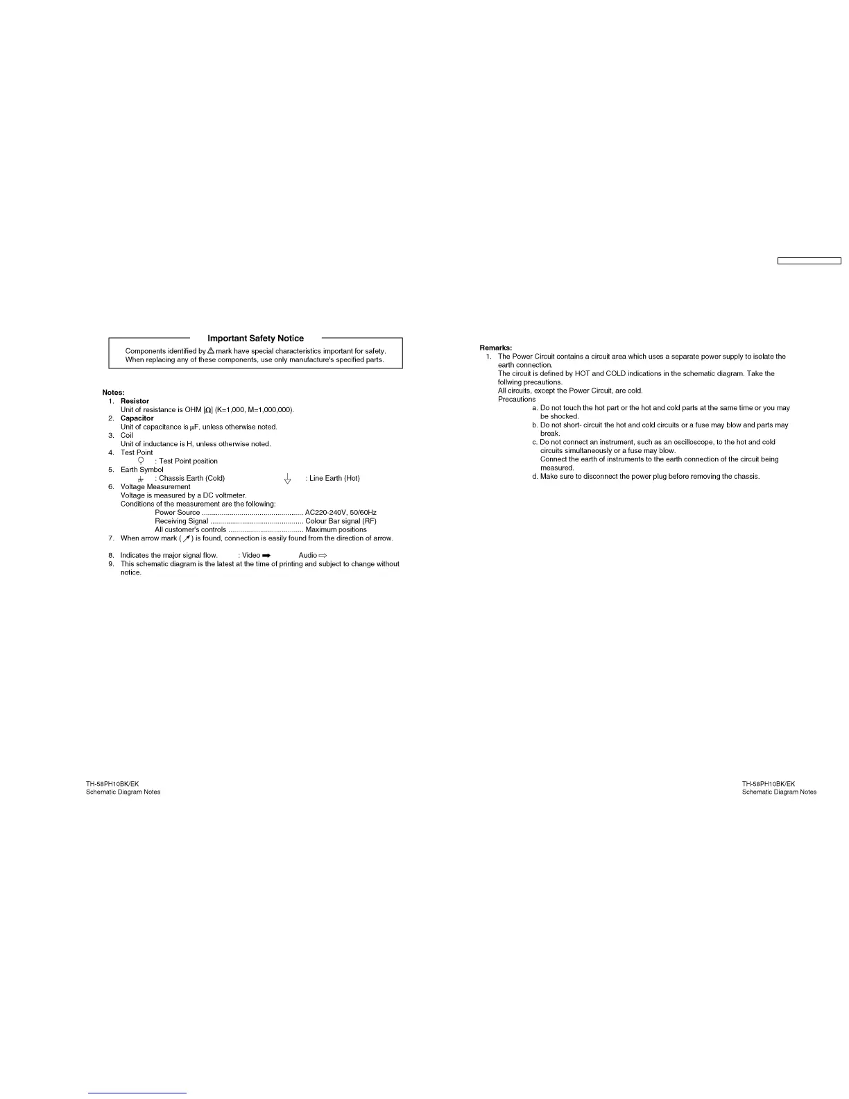 Panasonic TH-58PH10BK - Block and Schematic Diagram; Schematic Diagram Notes