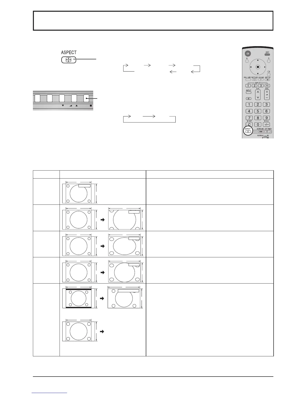 The aspect mode changes each time the ENTER button is