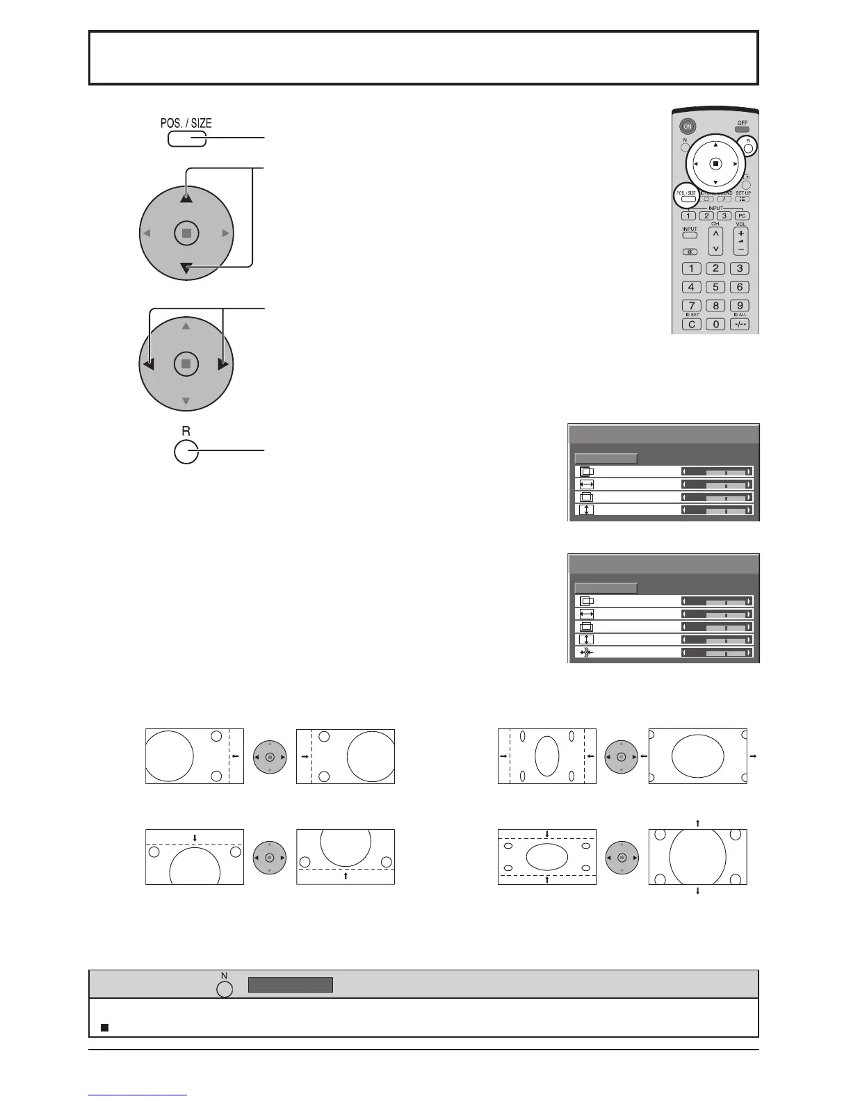 While the Pos. / Size display is active, if either the N button on the remote control is pressed at any time or the ACTION