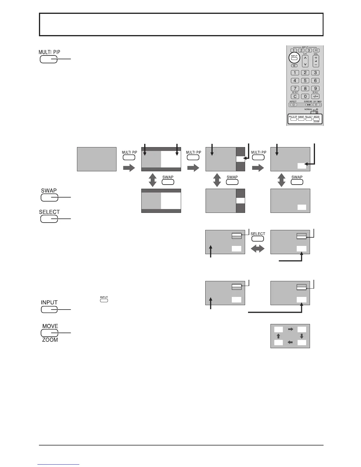 • If “Input lock” in Options menu is set to other than “Off”, MULTI PIP function isn’t available.