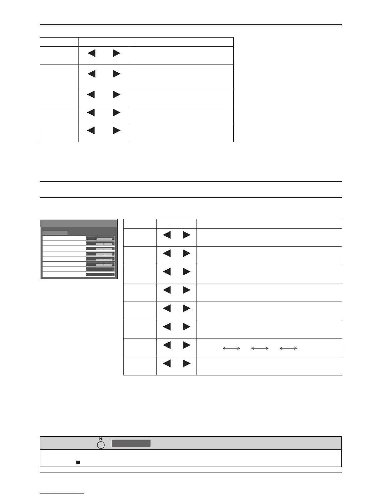 the ACTION ( ) button is pressed during “Normalise”, then all adjustment values are returned to the factory settings.