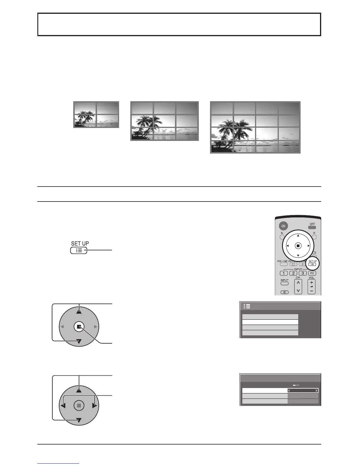 By lining up Plasma Displays in groups of 4, 9 or 16 as illustrated below, an enlarged picture may be displayed across