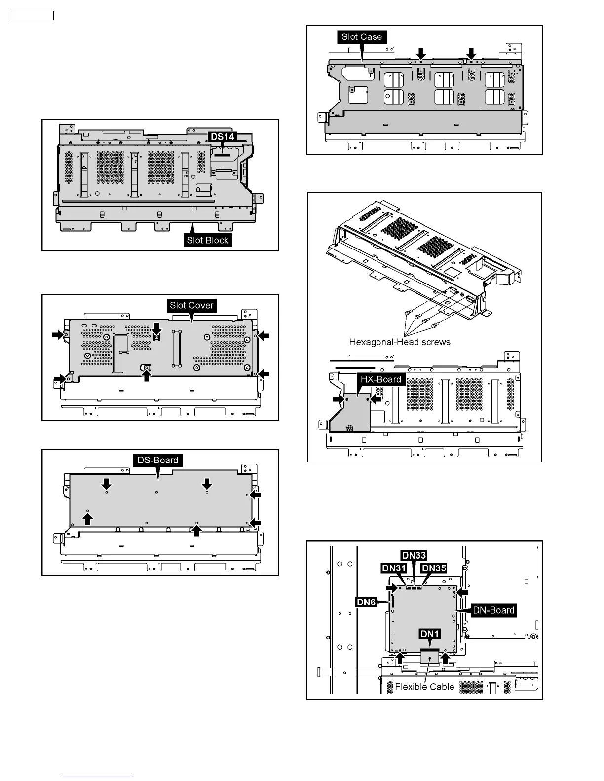 5. Remove 4 Hexagonal-Head screws and 2 screws and then