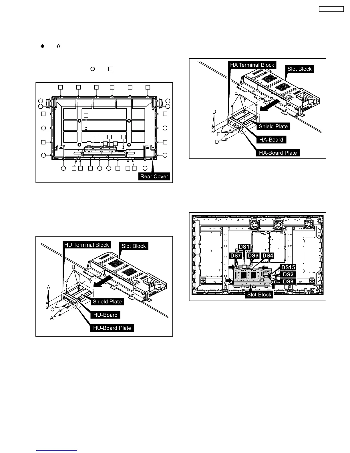 3. Remove 3 screws (F) and then remove HA-Board.