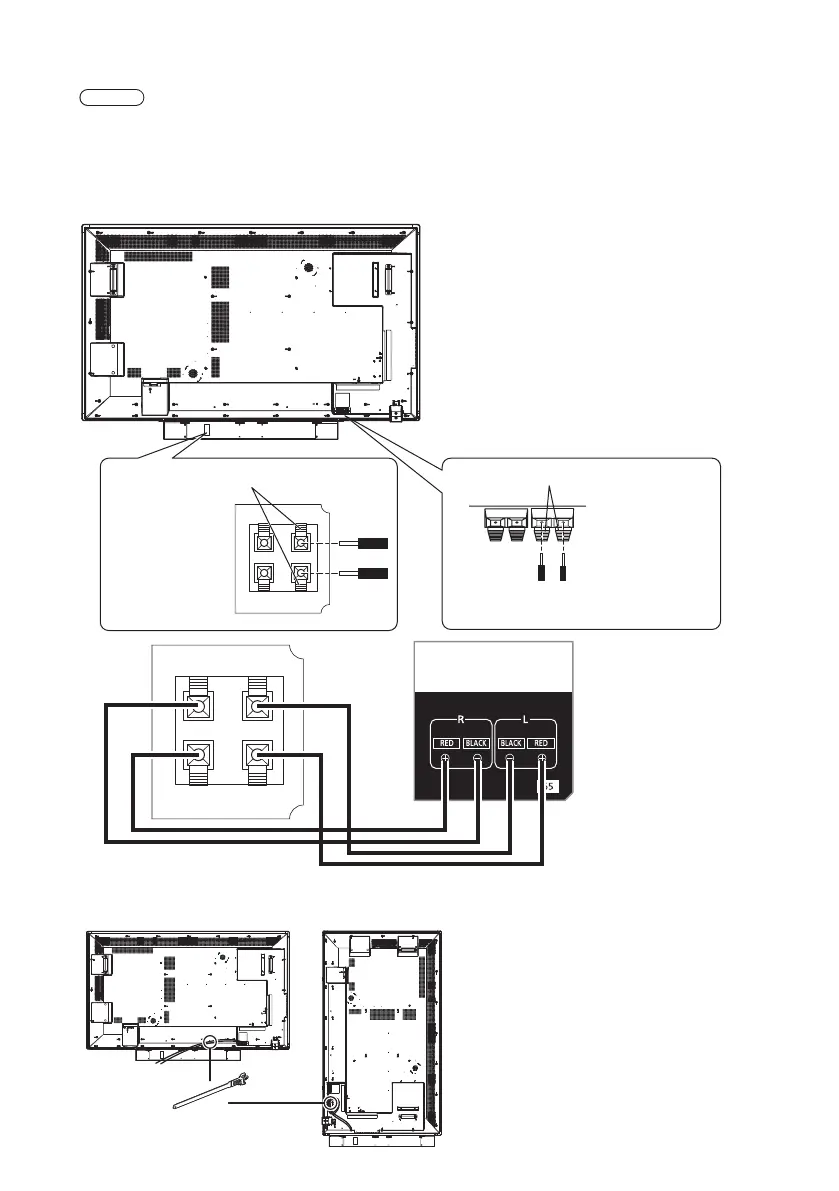 Connect the R terminal on the display to the R terminal on the speaker, and the same applies for the L terminals