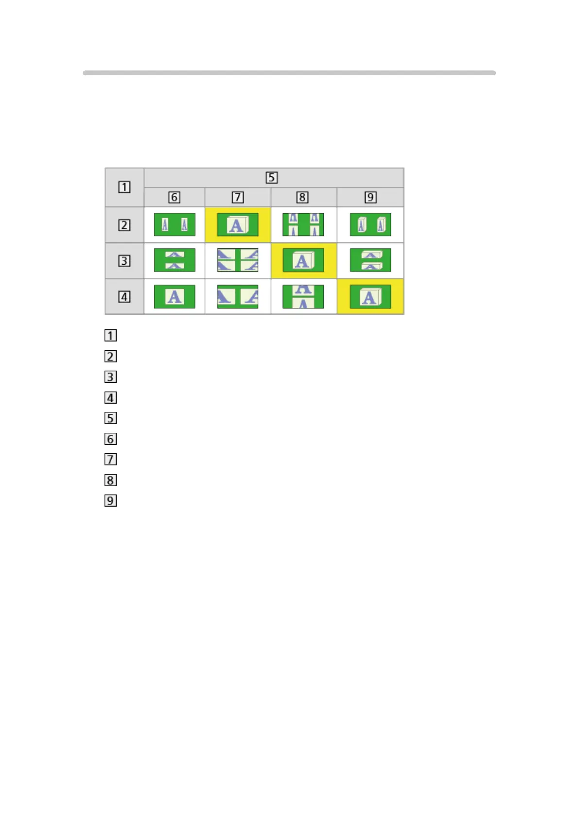 seen for each 3D Mode Selection and each source image format, and select