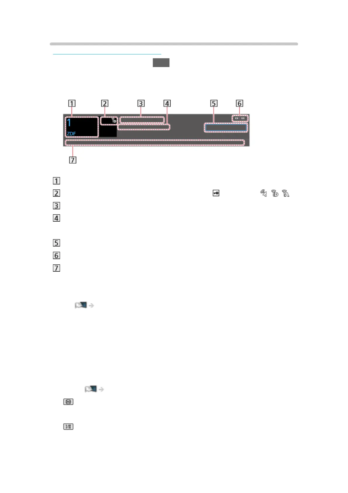 Channel type (Radio, etc.) / Encrypted channel ( ) / TV mode ( , , )