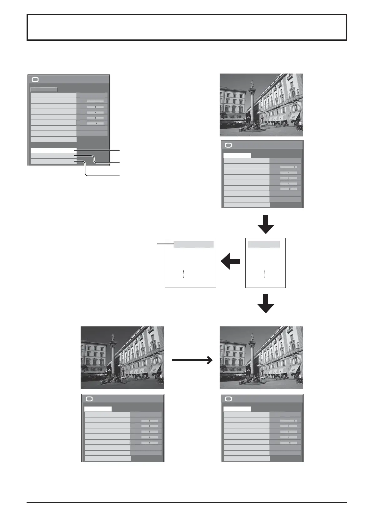 Up to 8 combinations of picture adjustment values (in the Picture menu and Advanced settings) can be stored in the