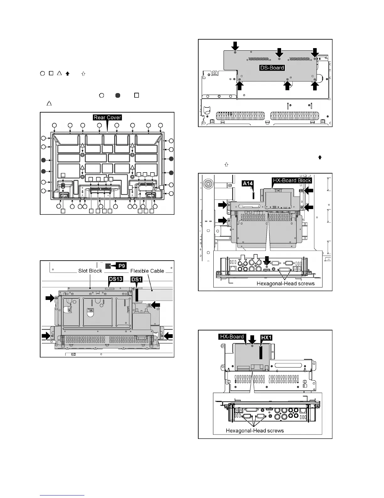 • , , , and marks indicate screw positions.