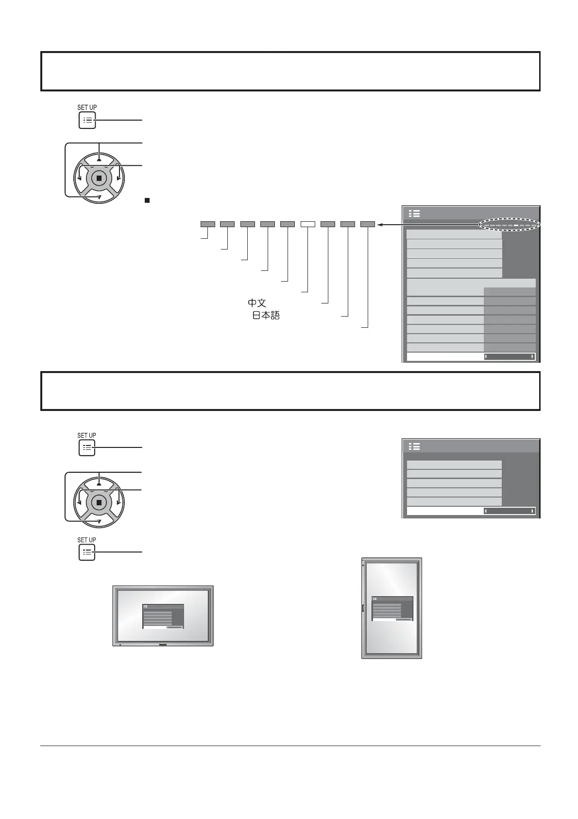 Sets the fan control, panel drive control, and the display style of on-screen menu for vertical installation.