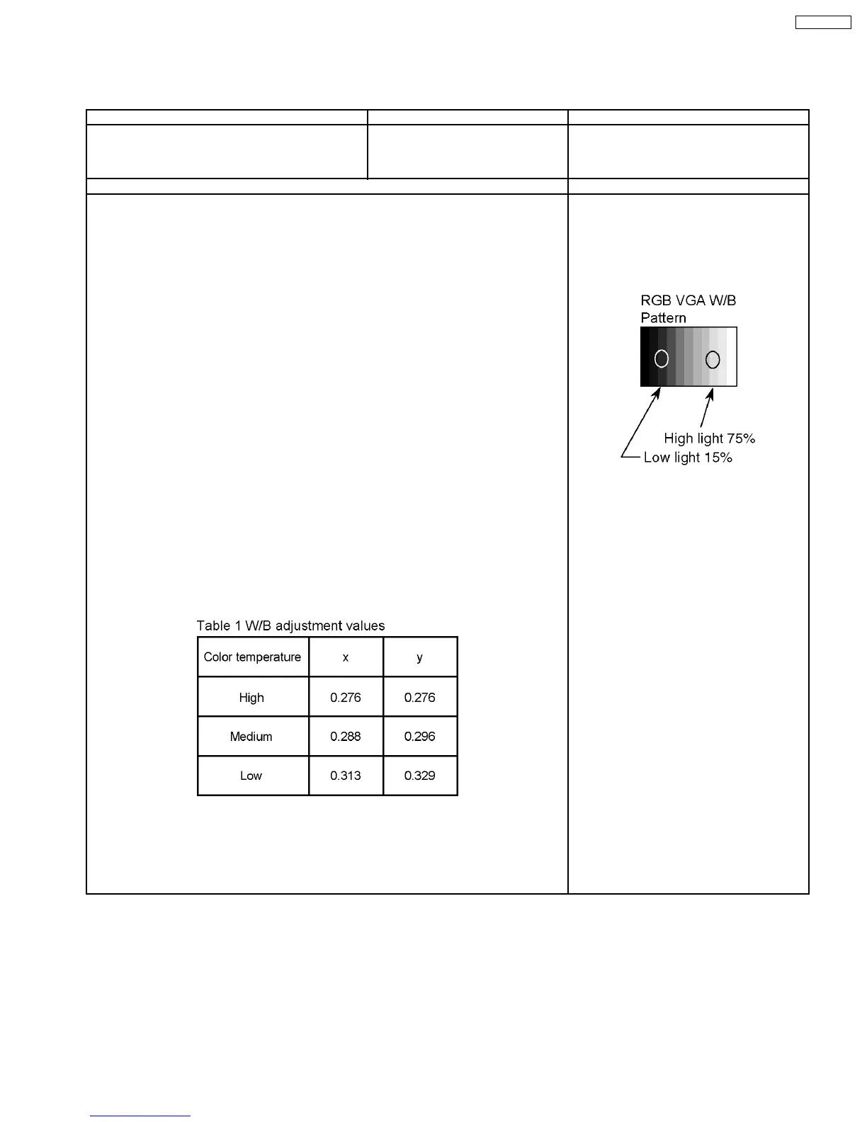 6. Fix G drive at E0h and adjust B drive and R drive so x, y become the “Color temperature