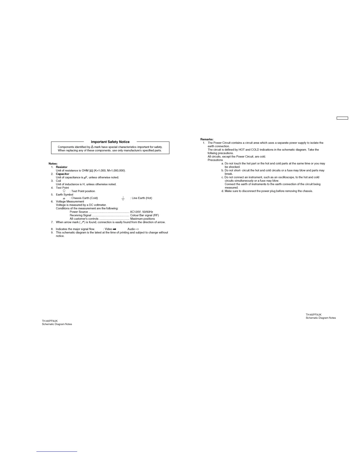 Panasonic TH-65PF9UK - 14 Block and Schematic Diagram; Schematic Diagram Notes