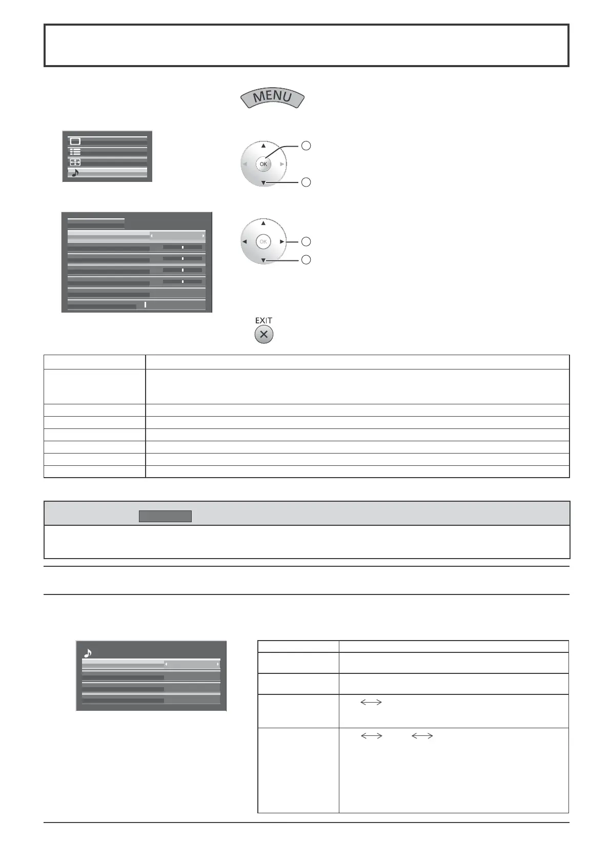 While the “Sound” menu is displayed, if the OK button is pressed during “Normalise”, then all adjustment values