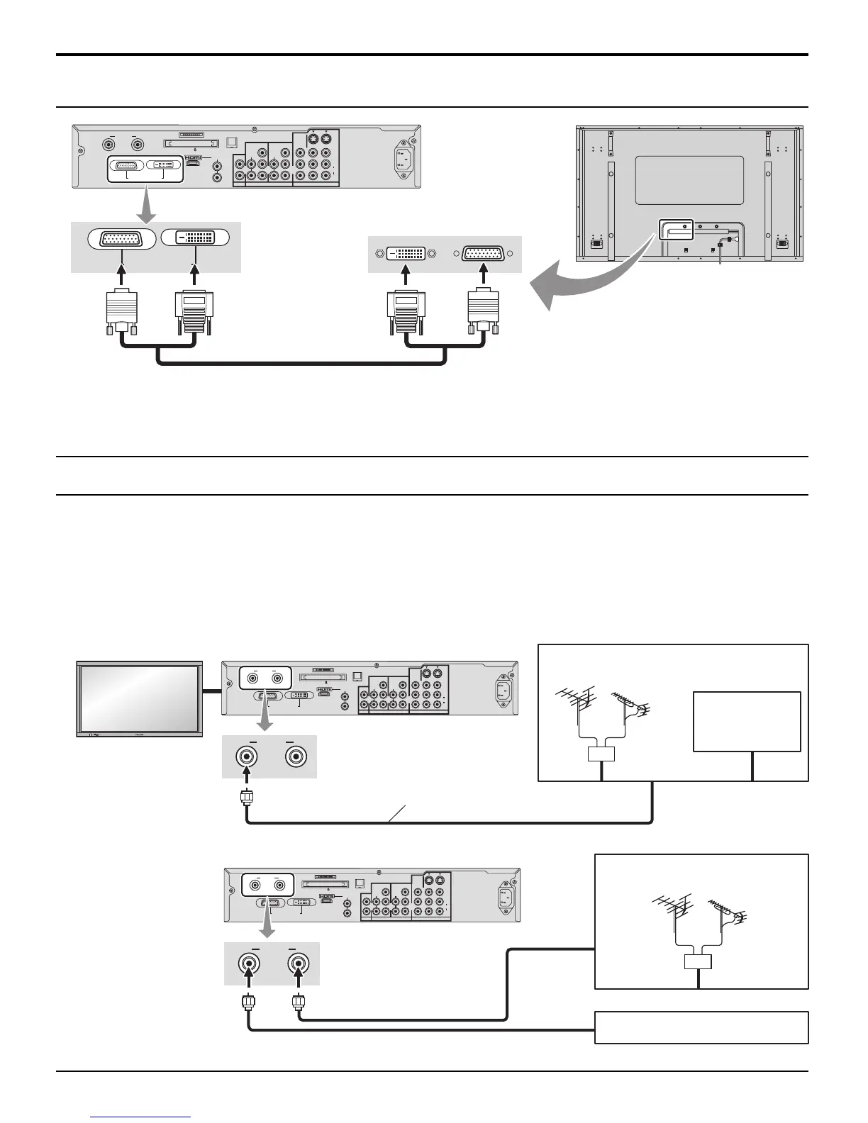 • When you enjoy both the terrestrial TV programs and the cable TV programs, connect the cable TV’s cable to ANTENNA