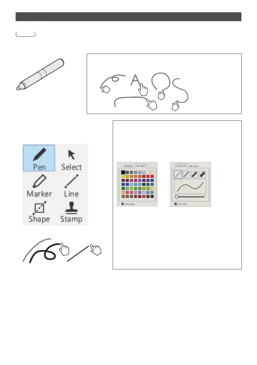 Always use a finger or the supplied pen to perform pen drawing. Do not perform operations with a hard object or