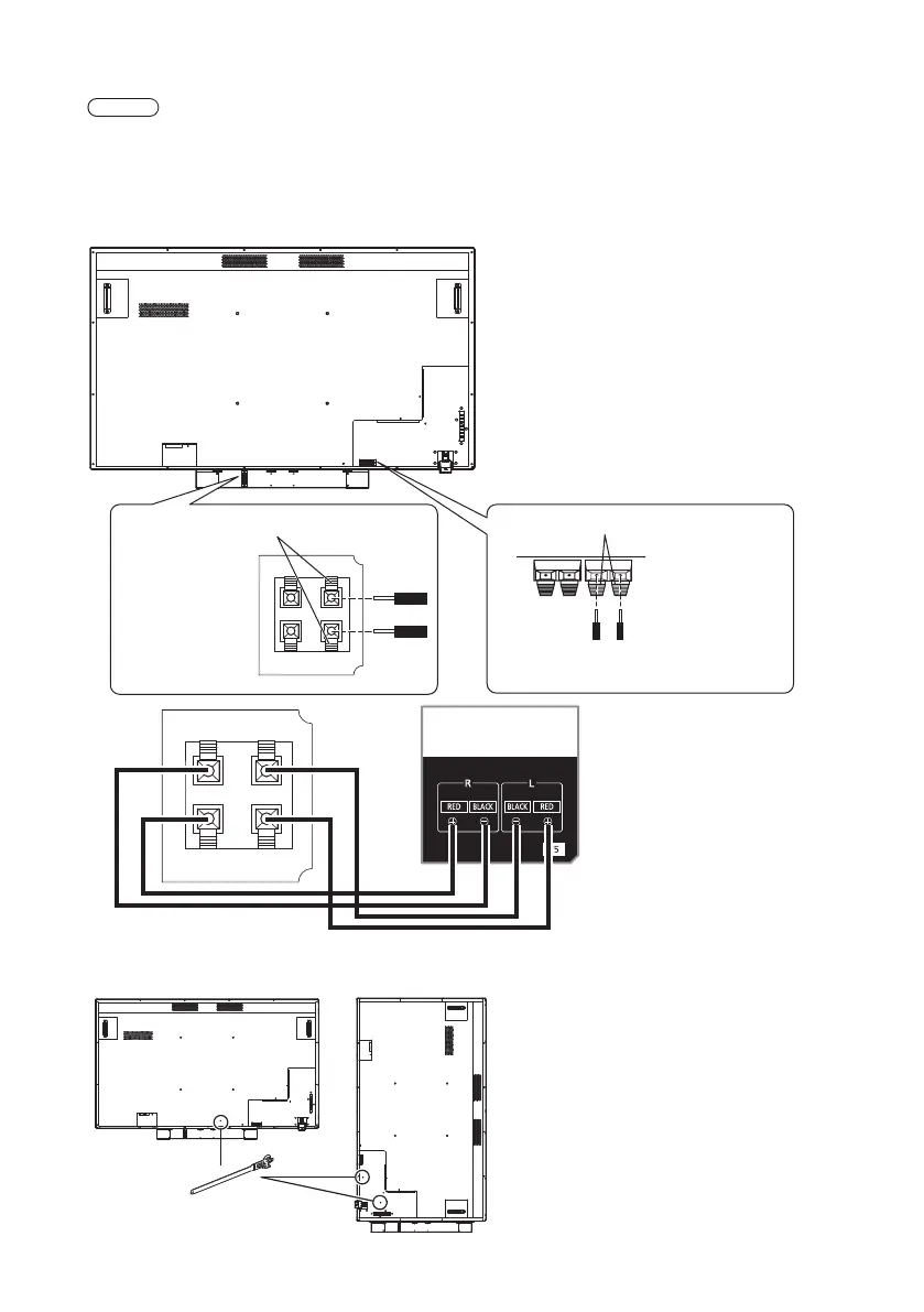 Connect the R terminal on the display to the R terminal on the speaker, and the same applies for the L terminals