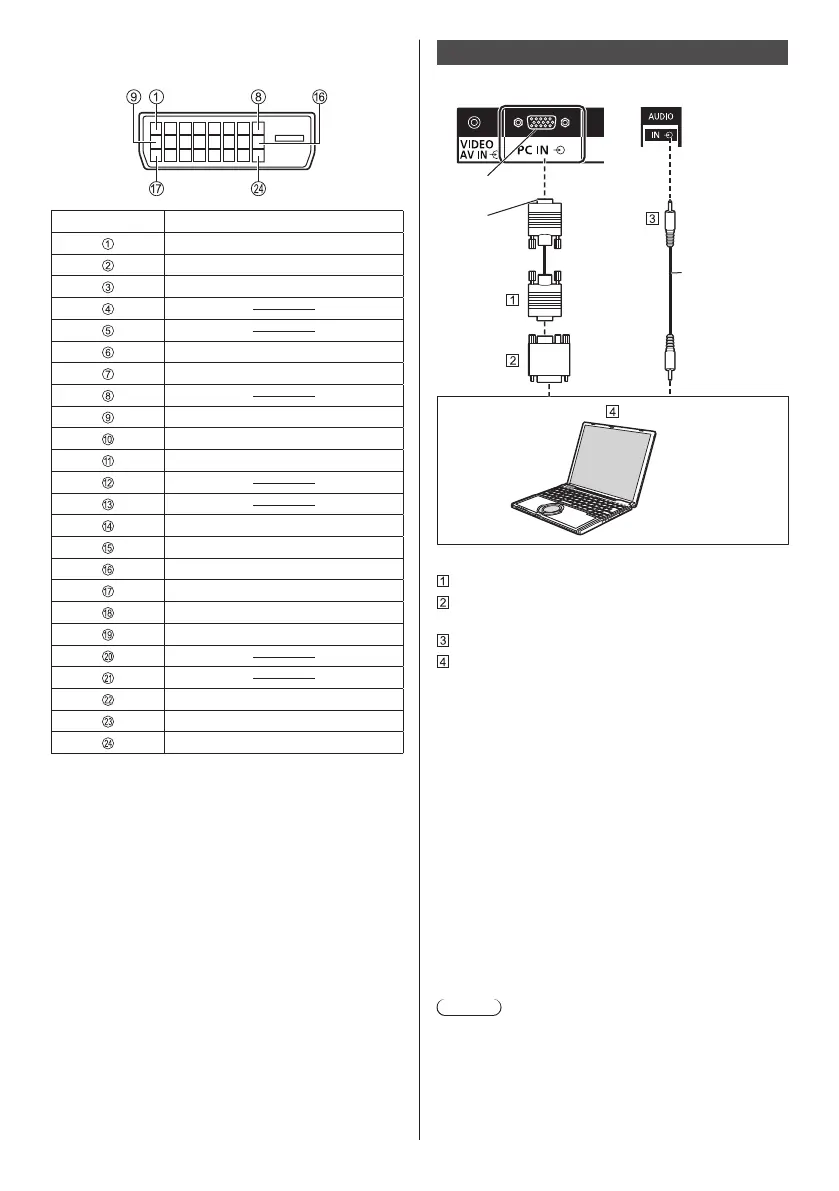 Pin assignments and signal names for DVI-D