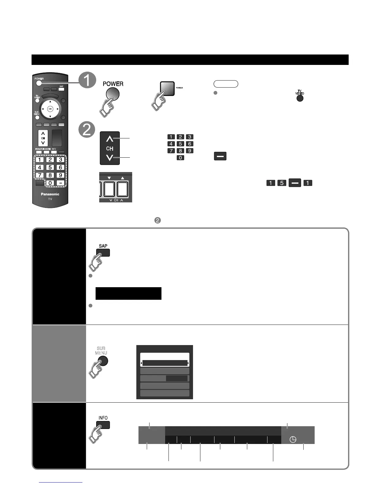Press SAP to select the next audio track (if available) when receiving a digital channel.