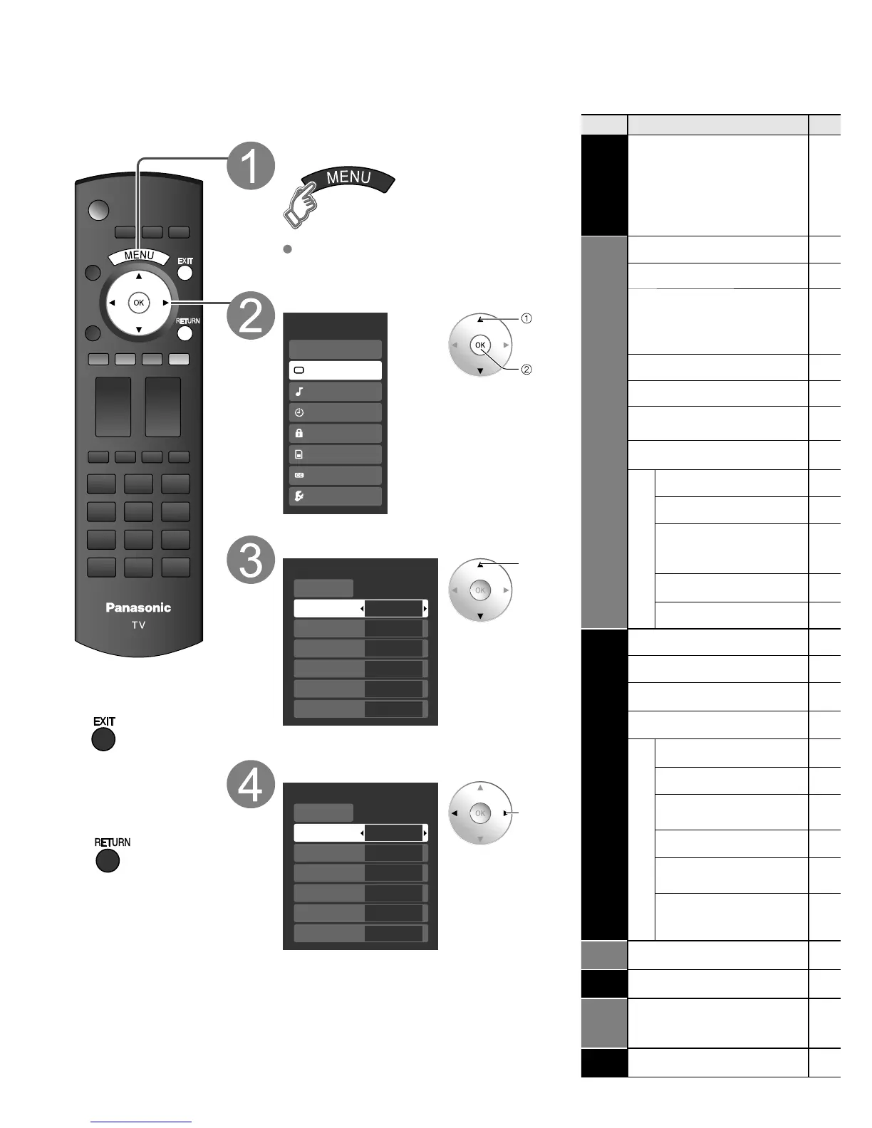 Various menus allow you to make settings for the picture, sound, and