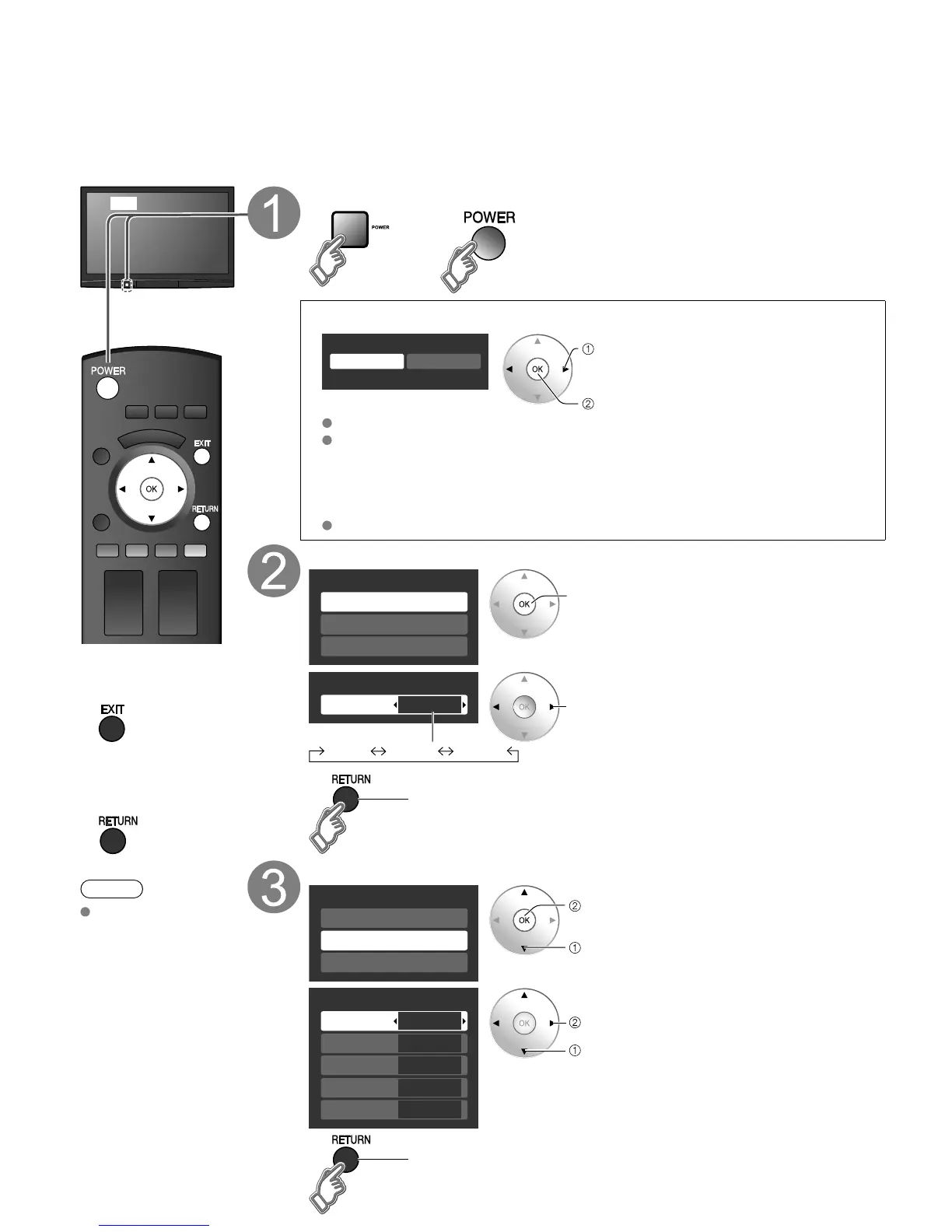 “First time setup” is displayed only when the TV is turned on for the first time after the power cord is