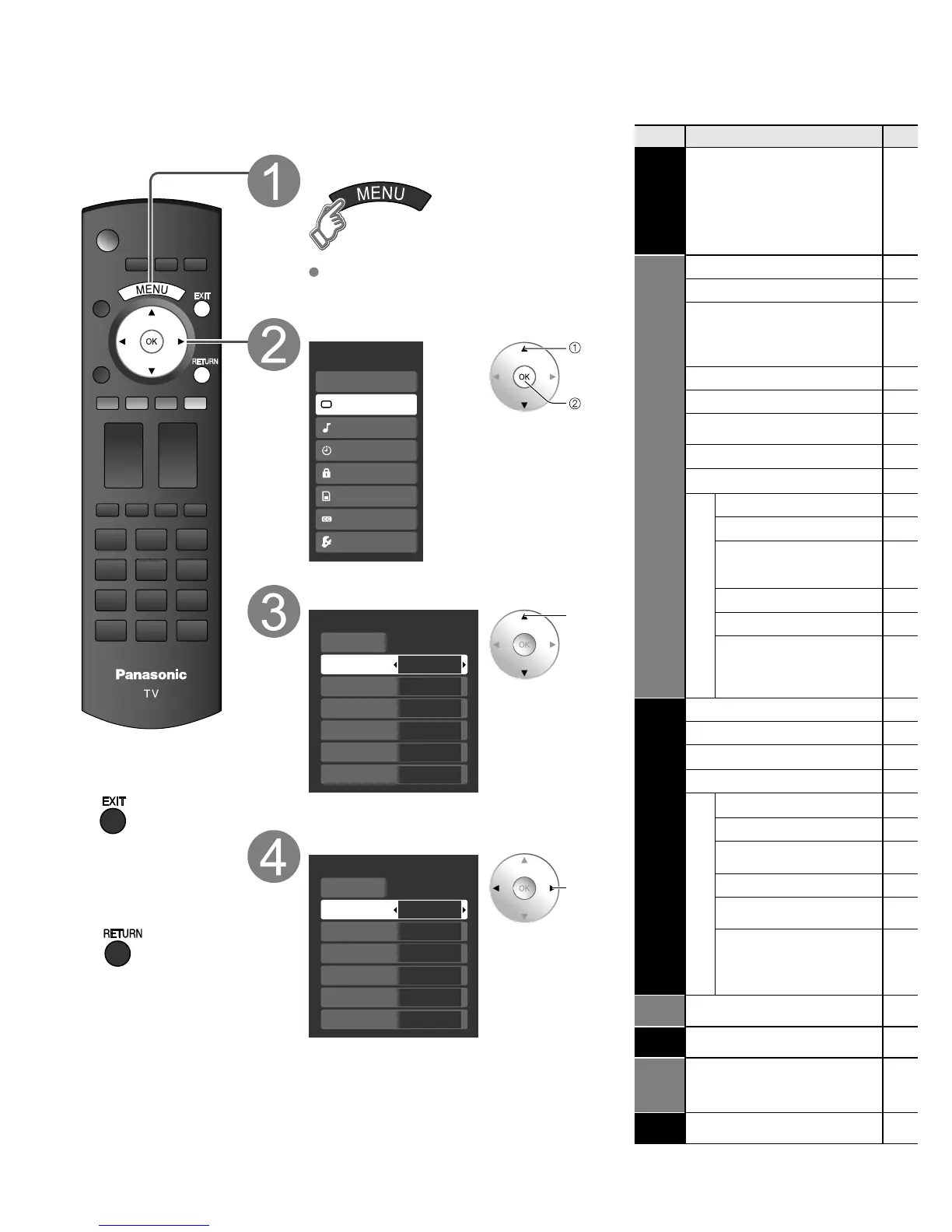 Various menus allow you to make settings for the picture, sound, and