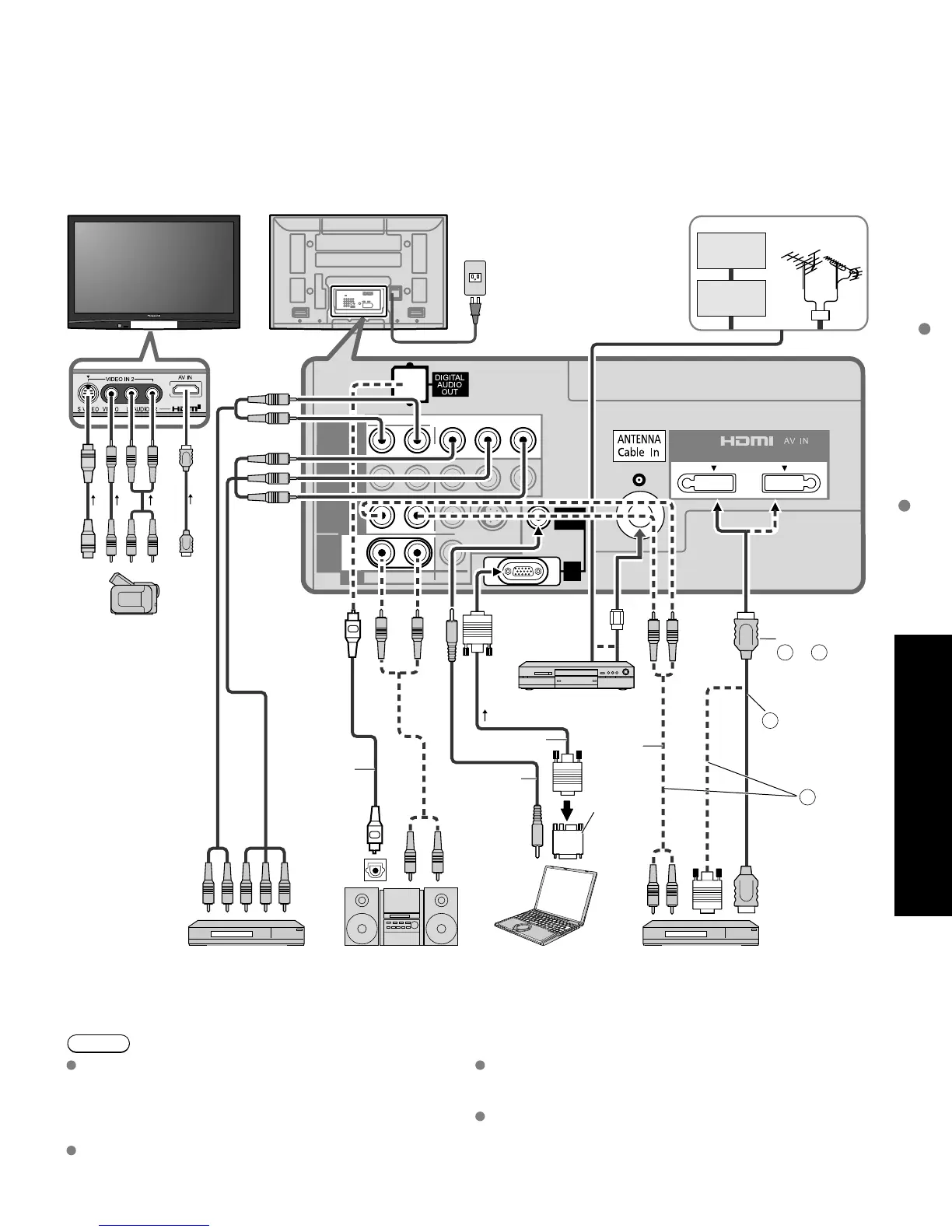 These diagrams show our recommendations or how to connect the TV unit to your various equipment.