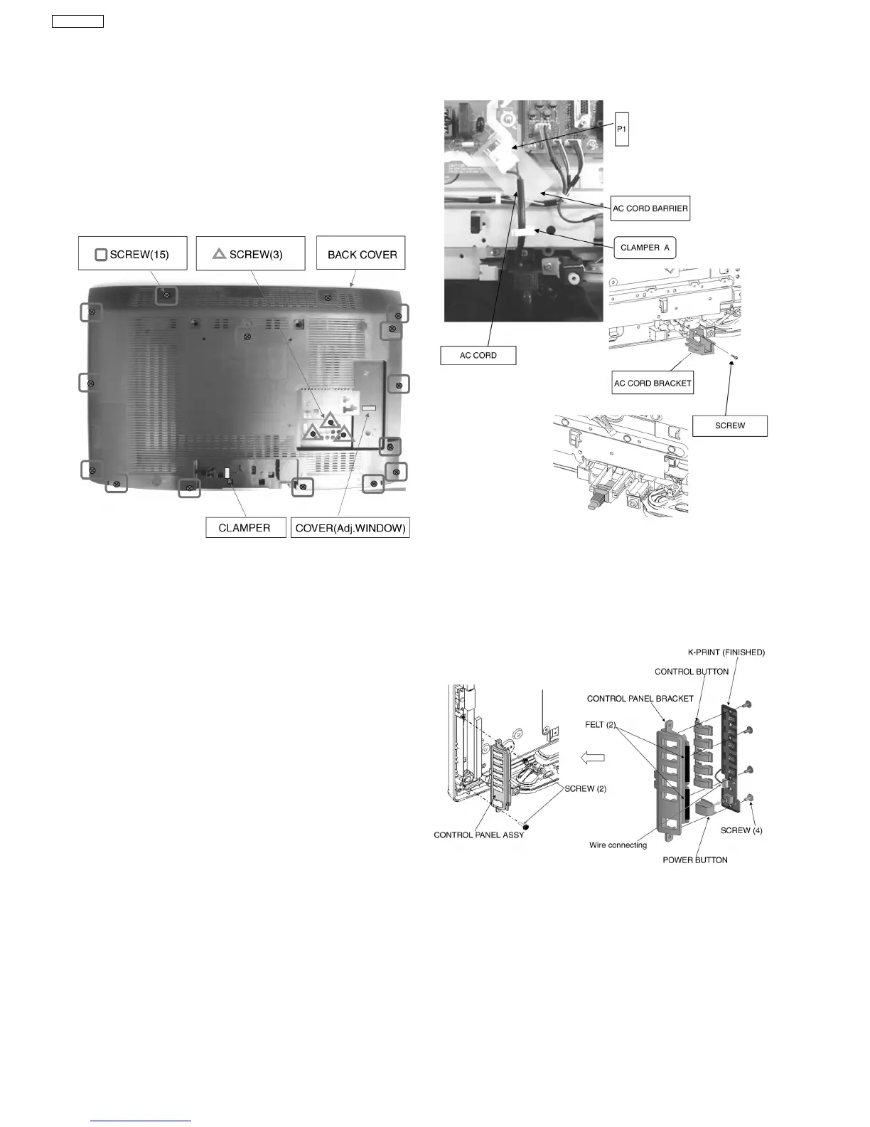 2. Remove screws(×2) and remove control panel assy.
