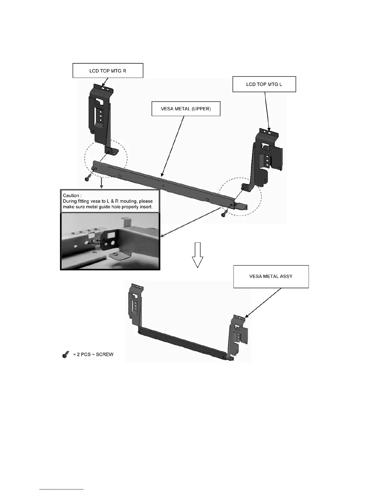 1. Assemble LCD TOP MTG (L,R) , VESA METAL (upper) and fix them with screw. Please use jig for vesa metal assembly