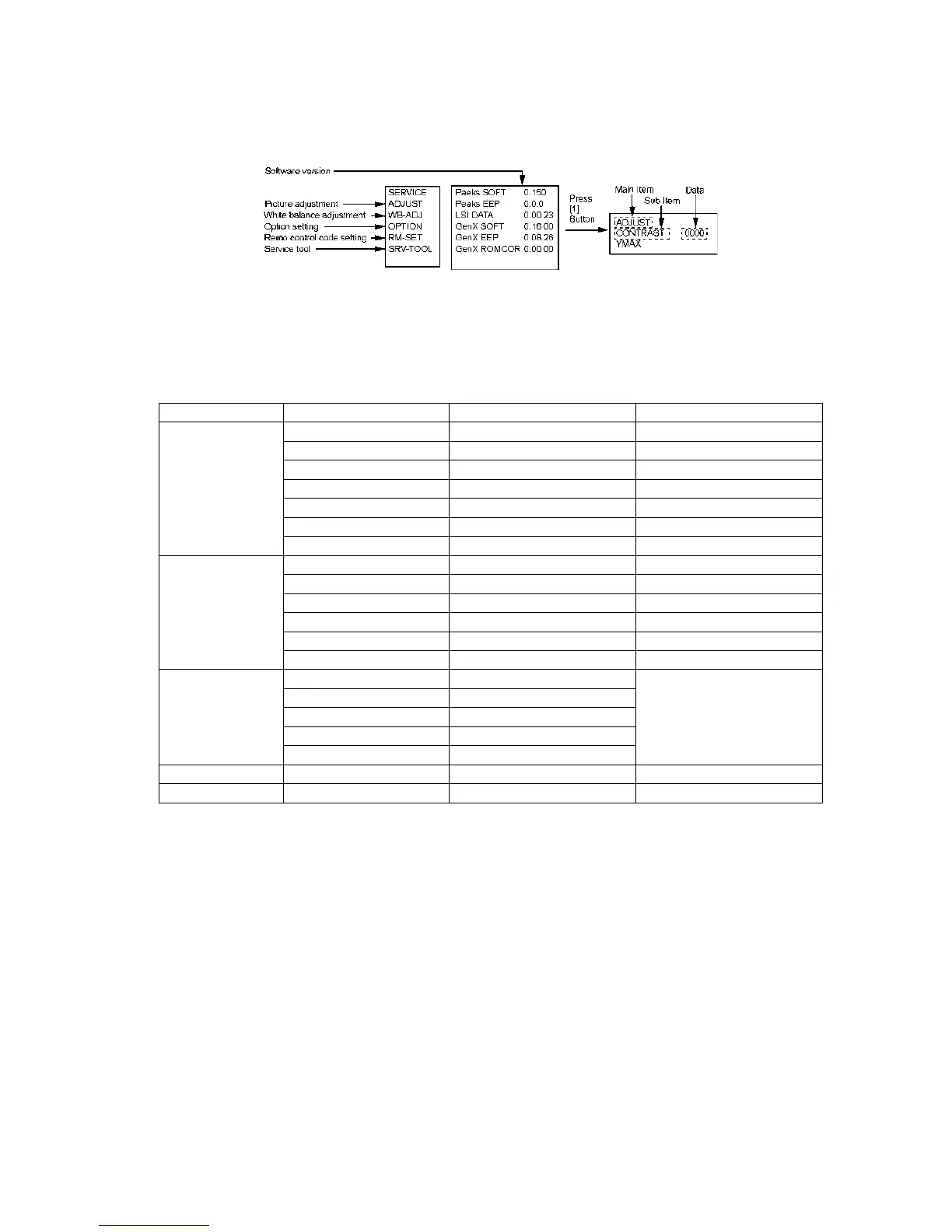 • After entering the adjustment mode, take note of the value in each item before starting adjustment.