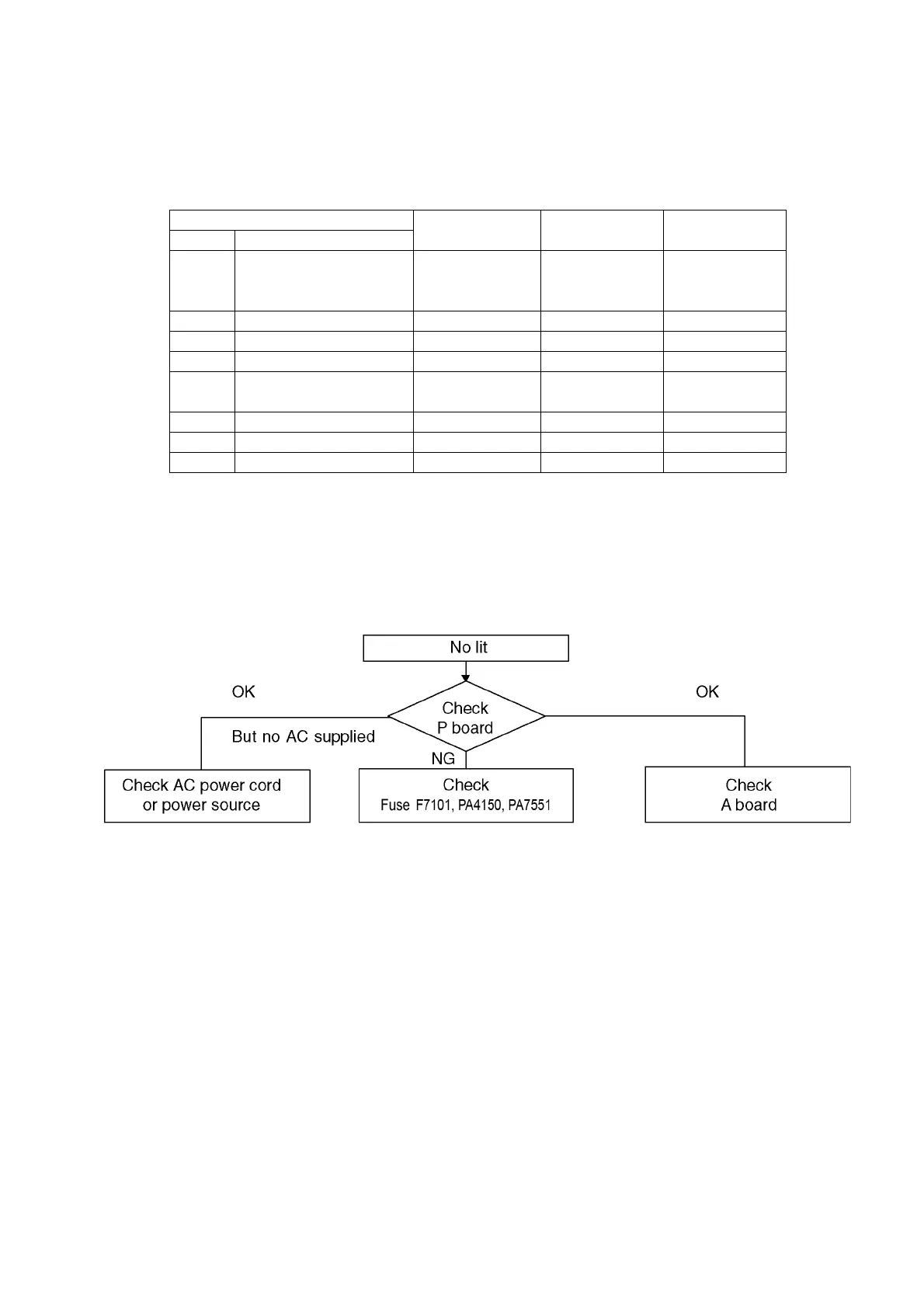 defective block can be identified by the number of blinking times of the Power LED on the front panel of the unit as follow:
