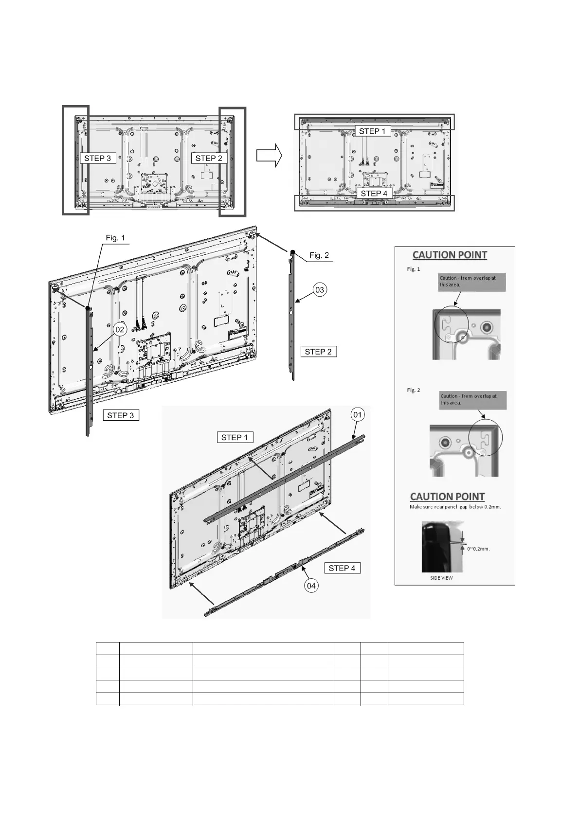 1. Fix rear panel “L” [Rear & Bottom] and “R” [Rear] ass’y at LCD Panel.
