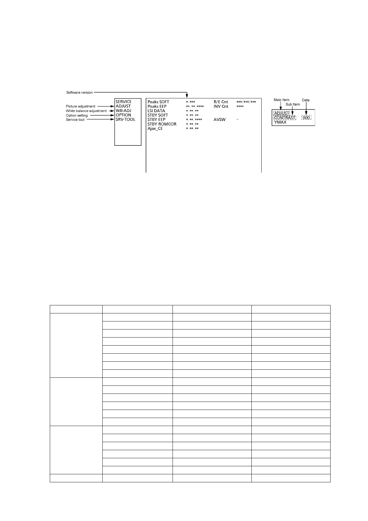 • After entering the adjustment mode, take note of the value in each item before starting adjustment.