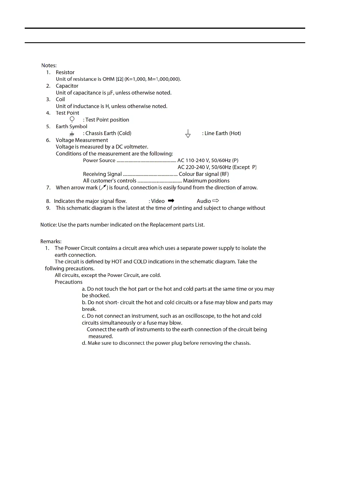 Panasonic TH-P42XT50D - Schematic Diagram Notes; Notes on Symbols and Units; Power Circuit Remarks