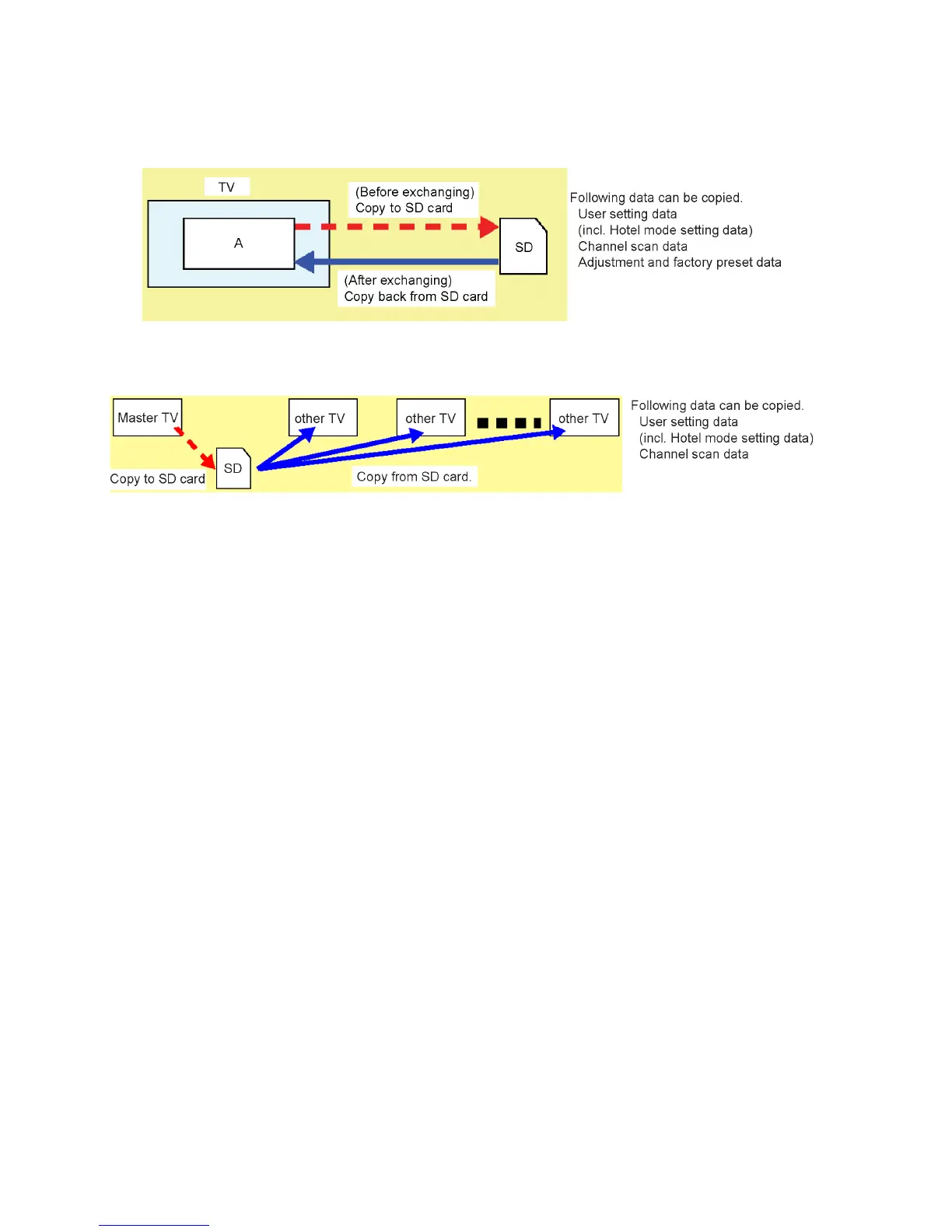 When installing a number of units in hotel or any facility, the data in master TV can be copied to SD card and then copy to other