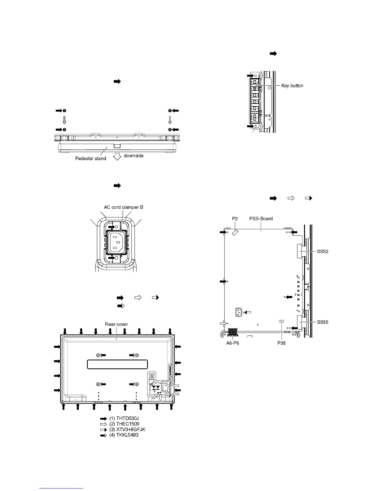 1. Remove the screws (×2 ) and remove the AC cord