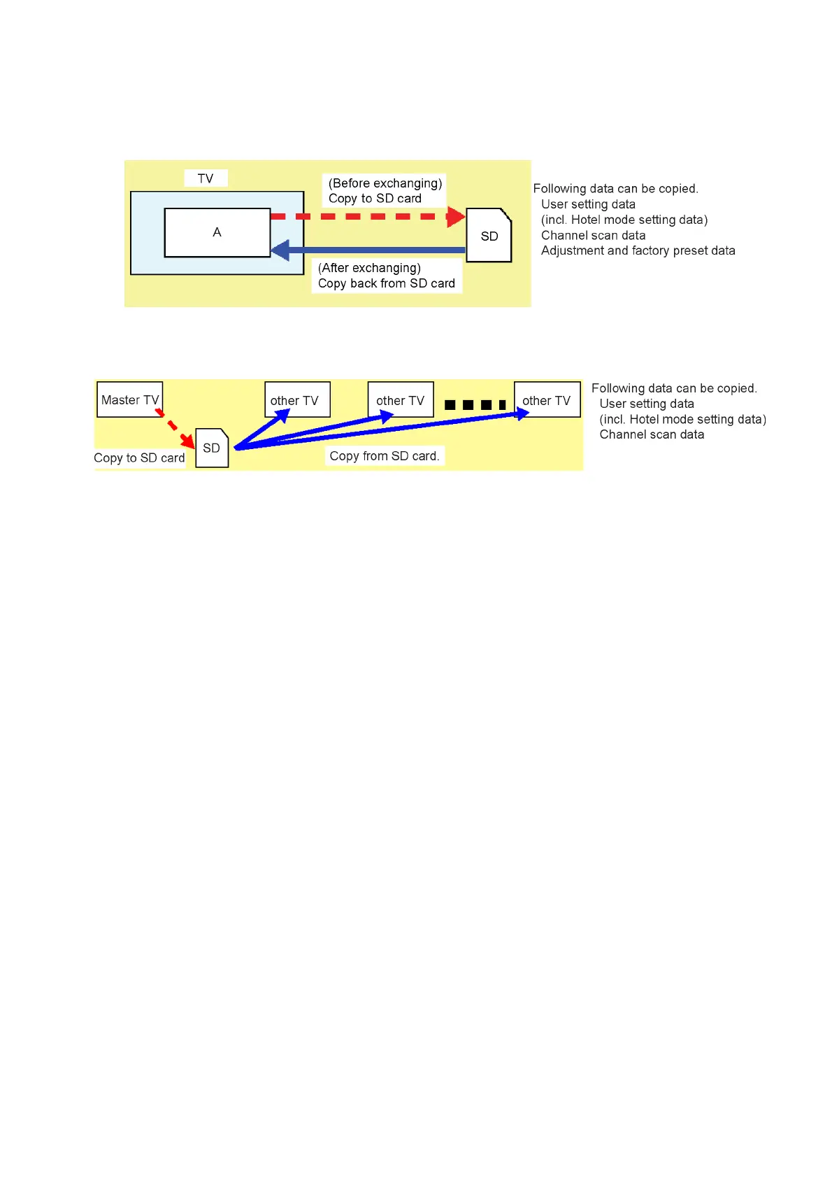 When installing a number of units in hotel or any facility, the data in master TV can be copied to SD card and then copy to other