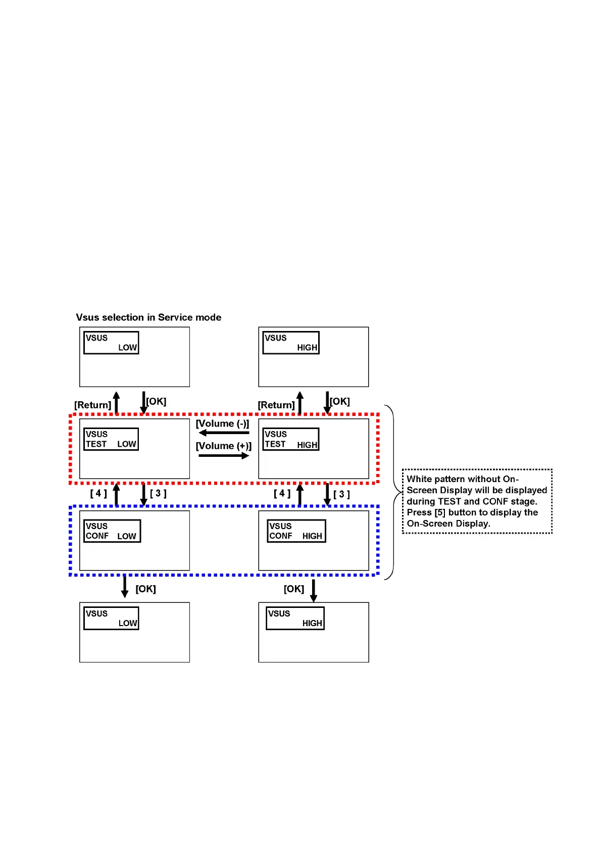 1. Go into main item [VSUS] in Service Mode. LOW or HIGH will be displayed.