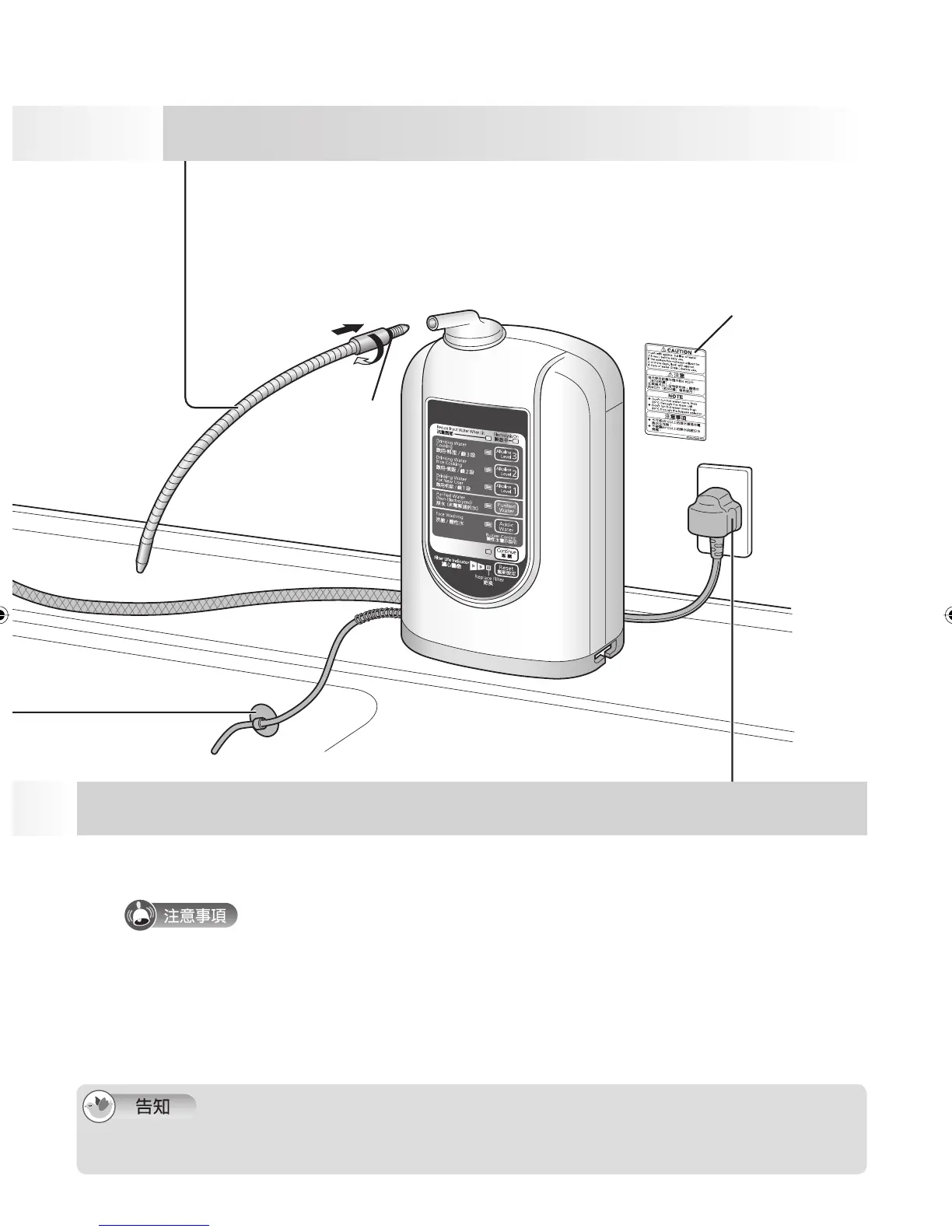 設置後,請通過 3 4 分鐘淨水,排出本體內的空氣。