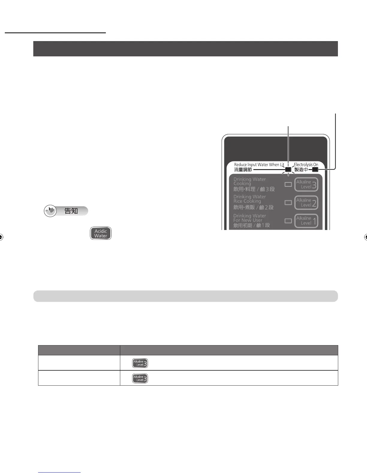 製造中顯示燈會熄滅。( 電解作用會中止。)
