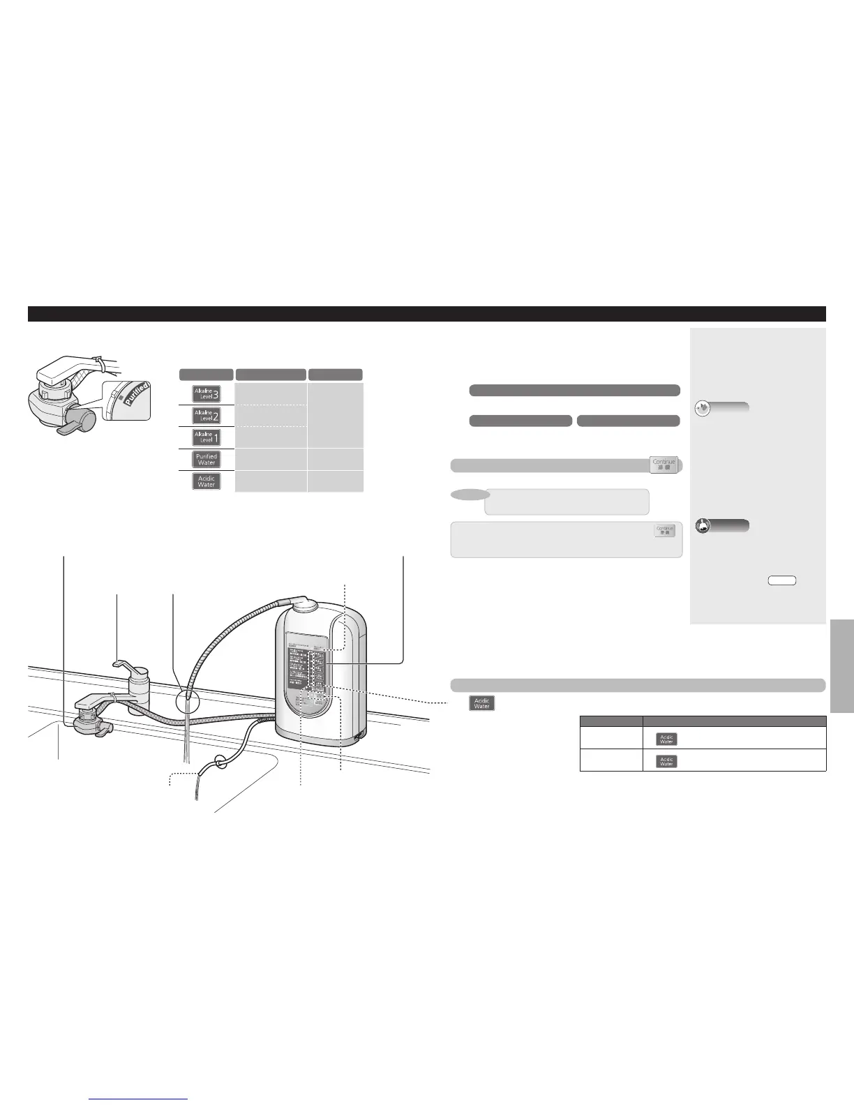 為避免誤飲使用酸性水時會持續響起警告