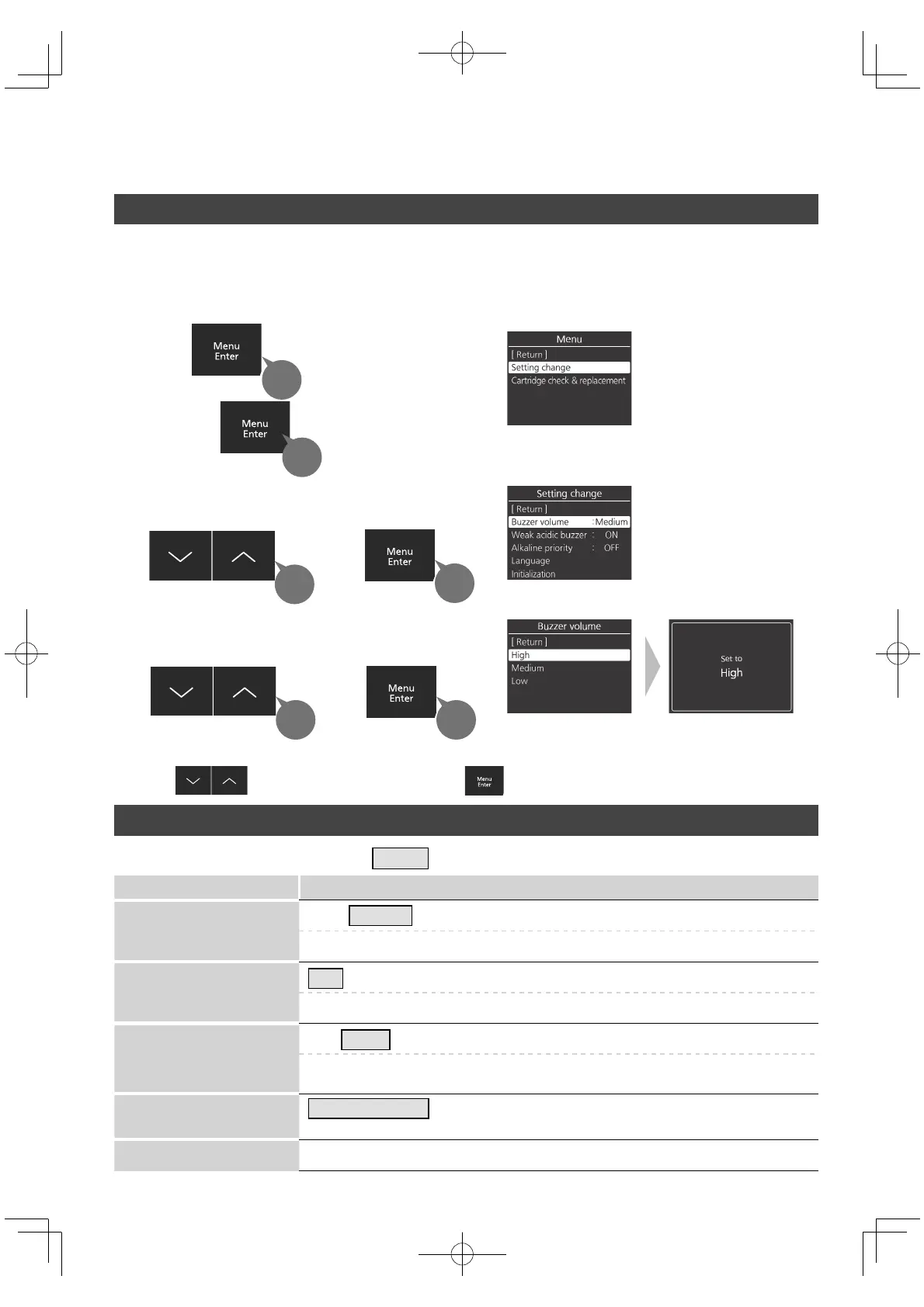 Setting this item to “OFF” disables the buzzer while weak acidic water or acidic water is used. (P. EN27)
