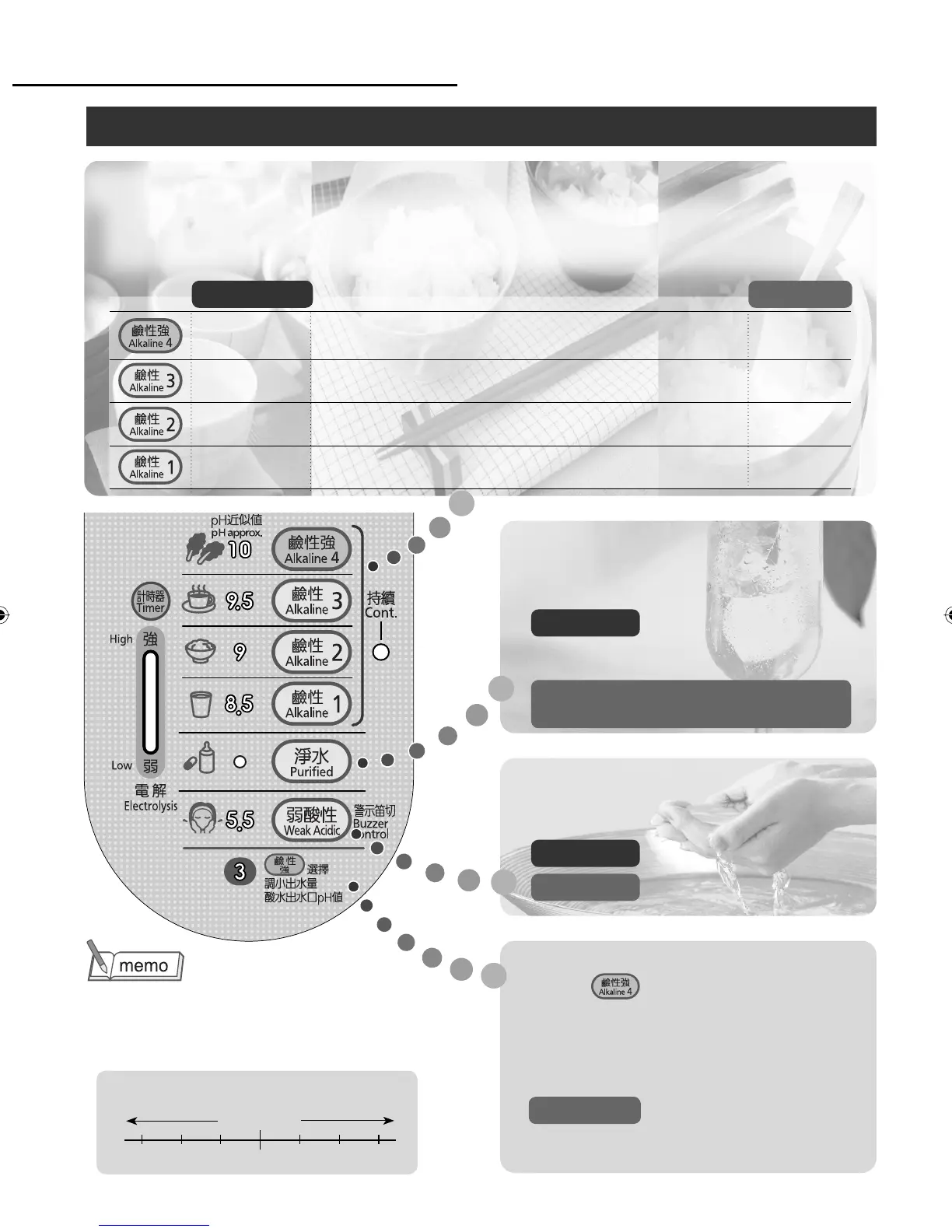 Alkaline 1 → Alkaline 2 → Alkaline 3 → Alkaline 4 (Strongly Alkaline). In these instructions,