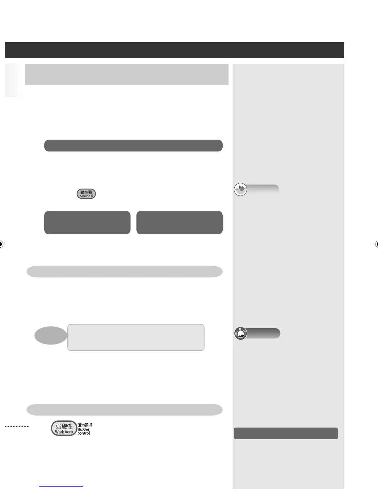 While weak acidic water is selected, the warning buzzer