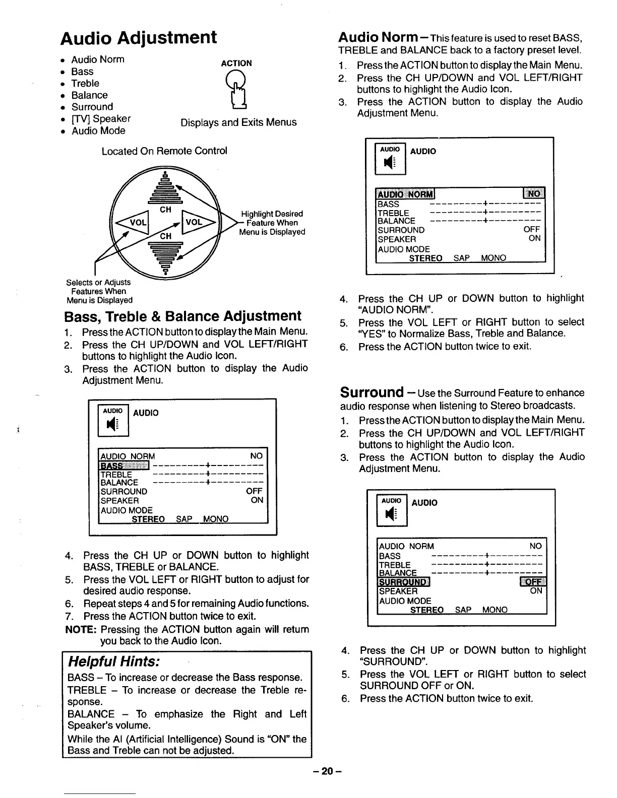 2. Press the CH UP/DOWN and VOL LEFT/RIGHT