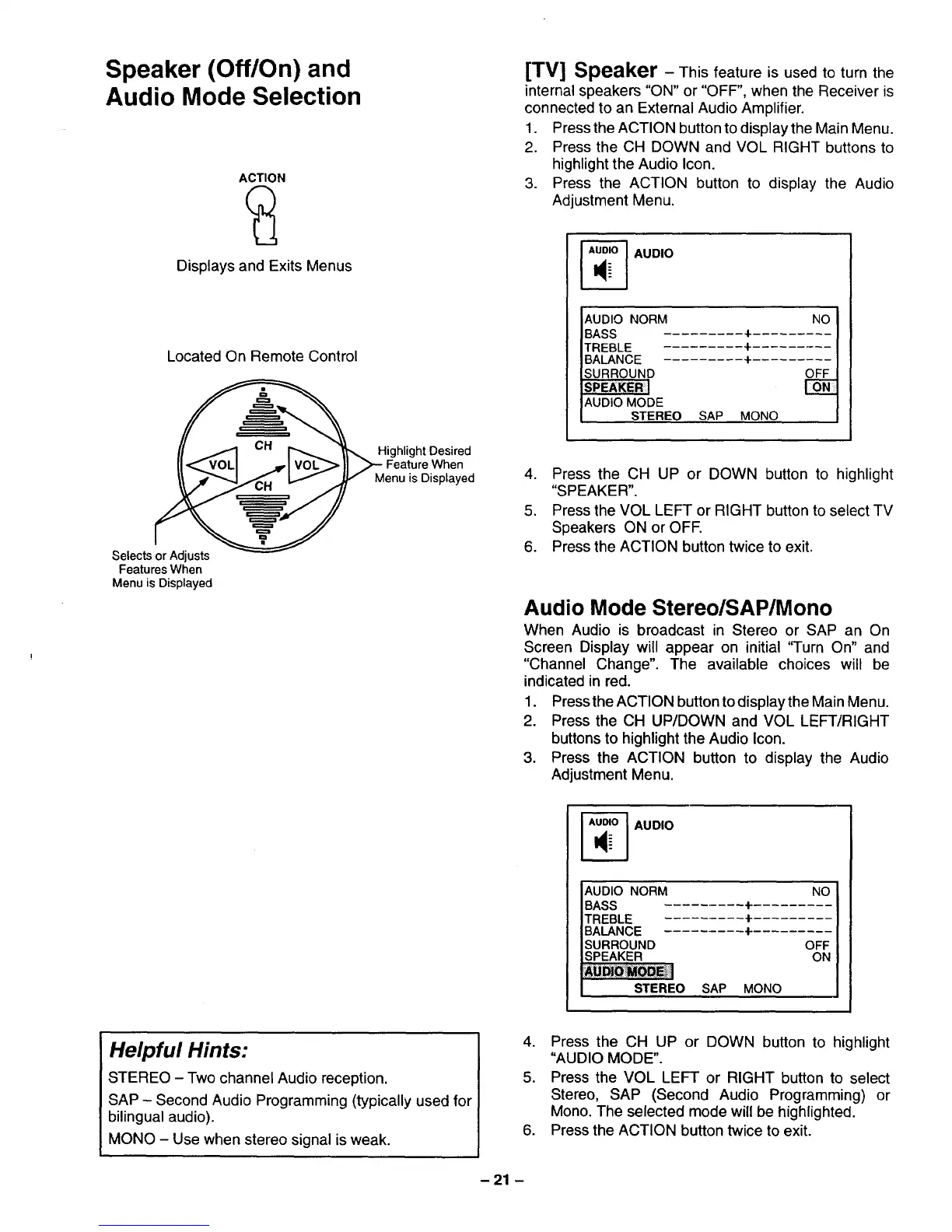 2. Press the CH UP/DOWN and VOL LEFT/RIGHT