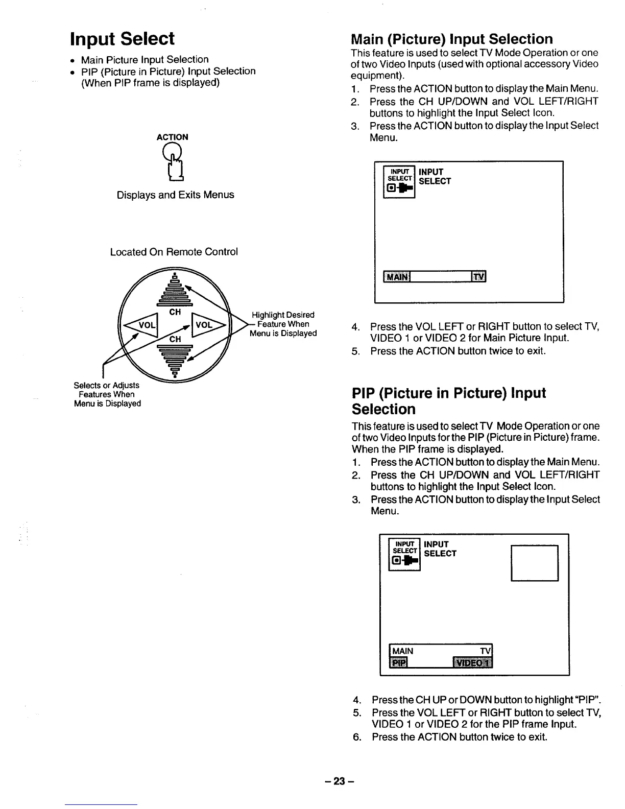 3. Pressthe ACTION button todisplaythe Input Select
