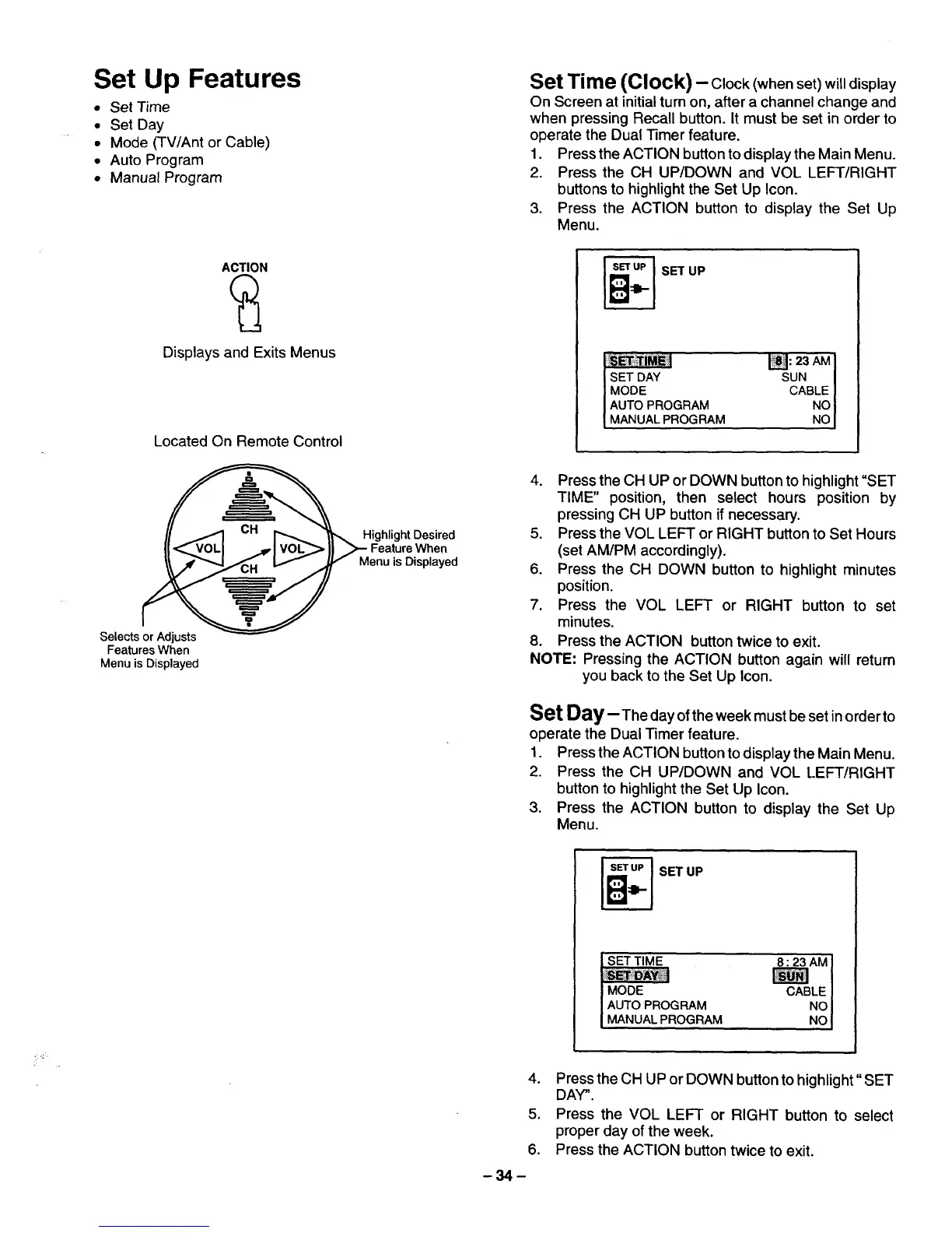Press the CH UP or DOWN button to highlight" SET