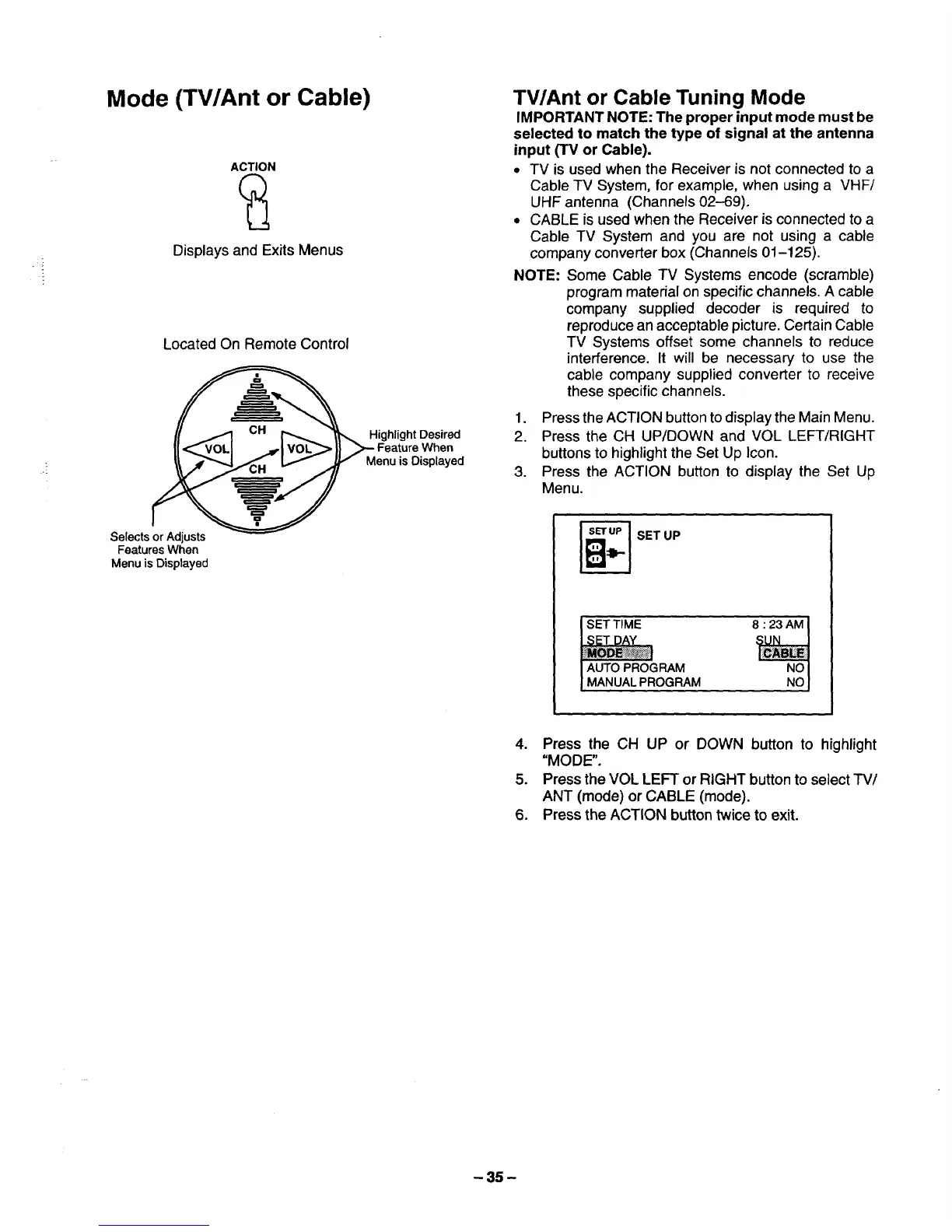 ANT (mode) or CABLE (mode).